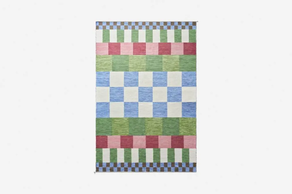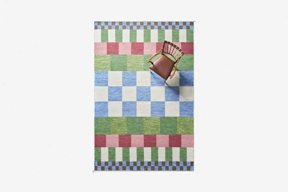 Formgivaren Eva Schildts matta ”Vienna” är inspirerad av Josef Franks födelsestad Wien och stadens kulturella blomstring kring förra sekelskiftet. Då målade konstnären Gustav Klimt ofta platta bakgrunder med till synes tvådimensionella schackrutor och cirklar. Med dubbelbindning som vävteknik kunde mattans slumpartade uttryck, med brokiga rutor i olika storlekar, möjliggöras. Den blågröna färgställningen lanserades under våren 2023 på Svenskt Tenn.