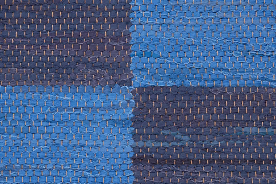 Svenskt Tenns dubbelvävda trasmatta ”Schackrutan” är formgiven av Margit Thorén under 1940-talet.
