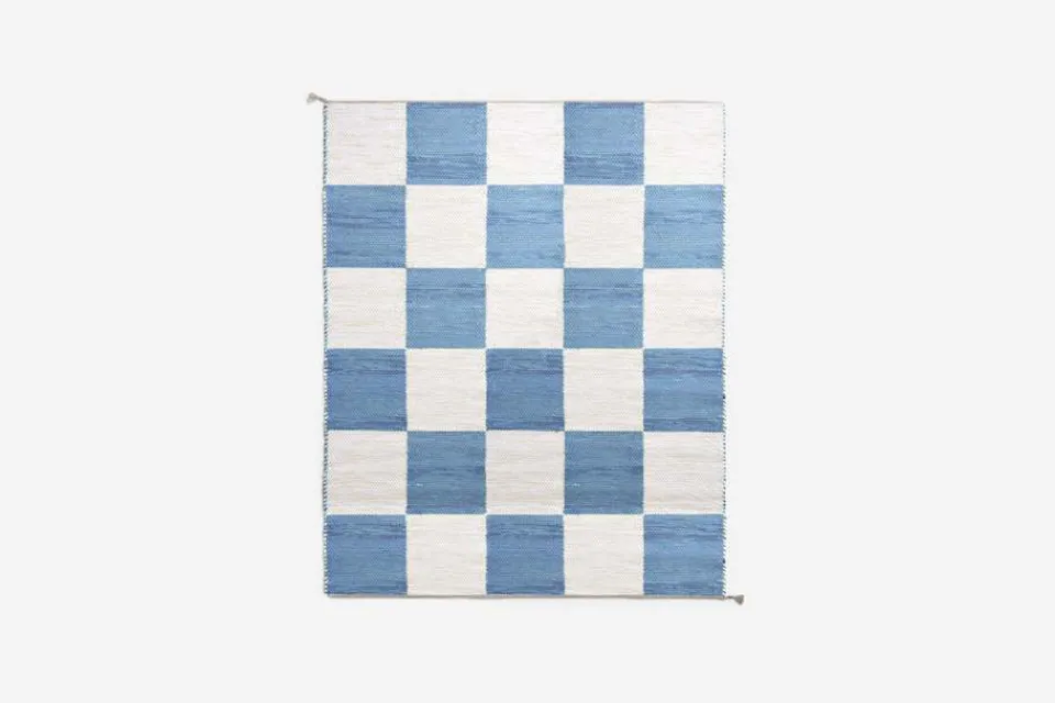 Svenskt Tenns dubbelvävda trasmatta ”Schackrutan” är formgiven av Margit Thorén under 1940-talet.