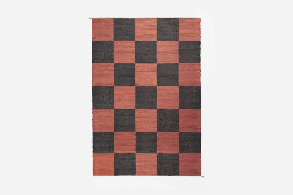 Svenskt Tenns dubbelvävda trasmatta ”Schackrutan” är formgiven av Margit Thorén under 1940-talet.