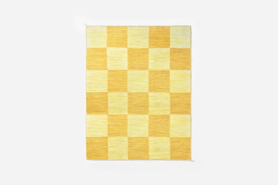 Svenskt Tenns dubbelvävda trasmatta ”Schackrutan” är formgiven av Margit Thorén under 1940-talet.
