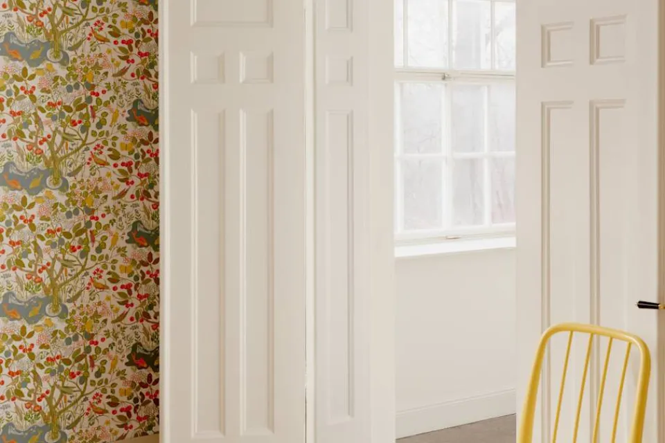 Vid eventuella fläckar på tapeten, rengör försiktigt med en lätt fuktad trasa.