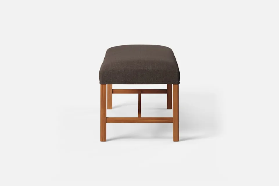 Denna rektangulära, stramt utformade pall med sits i tyg eller skinn formgavs av Josef Frank år 1950. De fyrkantiga benen har den typiska hörnprofileringen som kännetecknar Josef Franks formgivning. Benställningens H-kryss för tankarna till 1700-talets möbelformgivning.