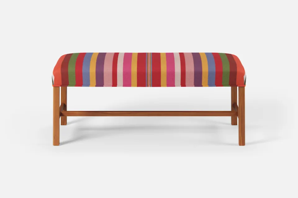 Denna rektangulära, stramt utformade pall med sits i tyg eller skinn formgavs av Josef Frank år 1950. De fyrkantiga benen har den typiska hörnprofileringen som kännetecknar Josef Franks formgivning. Benställningens H-kryss för tankarna till 1700-talets möbelformgivning. Tyget Hamaca Rojo kommer ursprungligen från Donghia Textiles, ett av flera inredningsföretag grundade av Angelo Donghia i USA på 1960 – 1970 talet. Tyget har funnits med ensamrätt i Svenskt Tenns sortiment sedan år 1995.