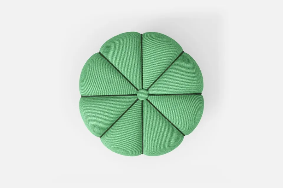 Den vackra, textilklädda pallen med mjuka, runda former ritades av Josef Frank för Svenskt Tenn cirka 1935. Pallen gjordes som en omarbetad variant av en möbel han skapade för sitt företag Haus und Garten i Wien, omkring 1929.