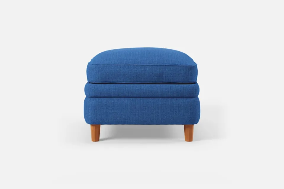 Denna fotpall formgavs av Josef Frank år 1936 tillsammans med fåtölj 568. Den generösa sittplymån under dynan och de facetterade nedåt avsmalnande benen är typiska för Josef Franks formspråk.