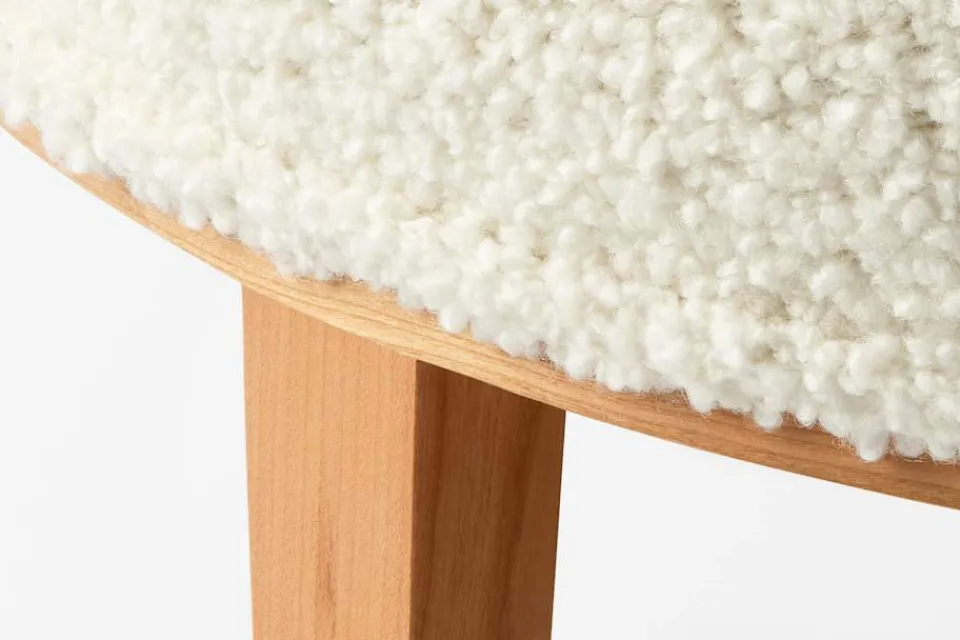 Eventuella fläckar på möbelns klädsel kan avlägsnas med en vit, ren trasa fuktad med vatten. Gnid inte på fläcken, utan badda försiktigt upp vätskan. Vid behov kan ett milt fläckborttagningsmedel användas, men prova alltid först på en mindre synlig del av materialet. Använd aldrig starka lösningsmedel och följ alltid skötselråden för möbelns specifika klädsel. Tänk på att direkt solljus och värme påverkar ytans färg och hållbarhet över tid.