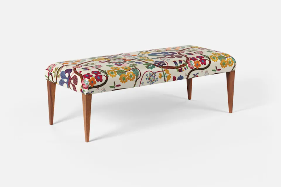 Denna långsmala pall i mahogny formgav Josef Frank troligen på 1930-talet för Svenskt Tenn. Den eleganta formen gör att den lämpar sig väl för hallar och genomgångsrum. Pallen är hantverksmässigt tillverkad hos Gemla, Sveriges äldsta möbelfabrik.
