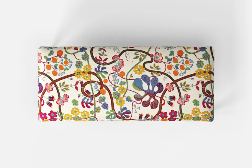 Eventuella fläckar på möbelns klädsel kan avlägsnas med en vit, ren trasa fuktad med vatten. Gnid inte på fläcken, utan badda försiktigt upp vätskan. Vid behov kan ett milt fläckborttagningsmedel användas, men prova alltid först på en mindre synlig del av materialet. Använd aldrig starka lösningsmedel och följ alltid skötselråden för möbelns specifika klädsel. Tänk på att direkt solljus och värme påverkar ytans färg och hållbarhet över tid.