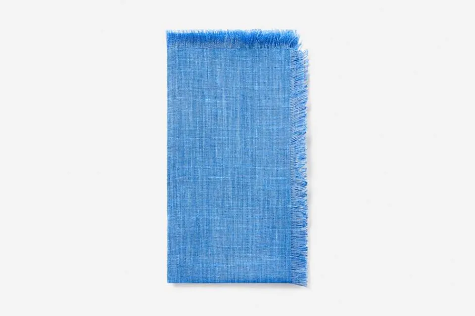 Fina linneservetter med fransar, perfekta till vårens alla dukningar. Välj mellan blå, rosa och gul – tillverkade i Svenskt Tenns eget lin.