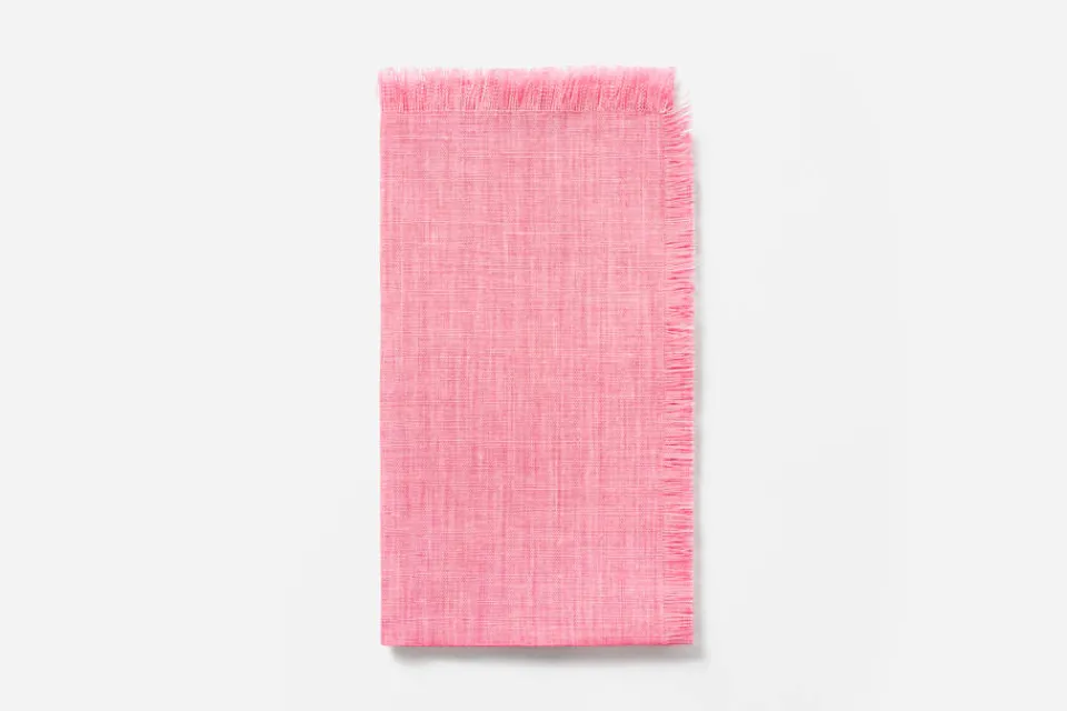 Fina linneservetter med fransar, perfekta till vårens alla dukningar. Välj mellan blå, rosa och gul – tillverkade i Svenskt Tenns eget lin.