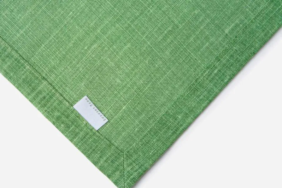 Tygservett i Svenskt Tenns eget, enfärgade linnetyg i Jadegrön. servetten kan kombineras såväl med enfärgade som mönstrade dukar och textilier.