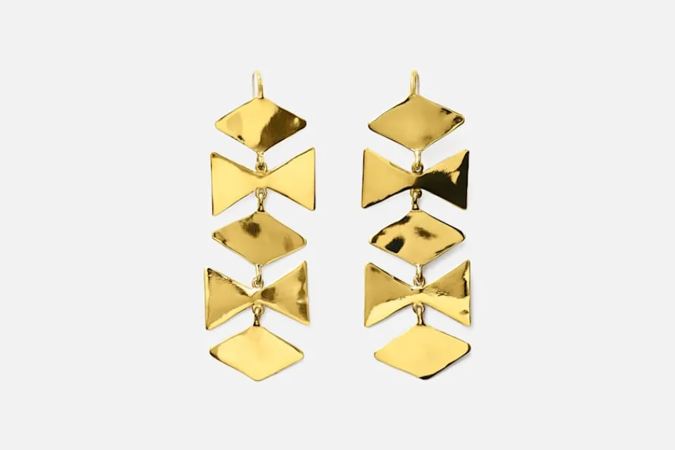 Dessa skulpturala mässingsörhängen är formgivna av Ariana Boussard-Reifel, vars smycken förenar samtida konst med antika former. Örhängena är handgjorda i mässing och speglar Arianas bakgrund som skulptör och hennes djupa fascination för mänsklig utsmyckning genom tiderna. Hennes smycken har burits av kvinnor i flera generationer och skapas för att stärka, inspirera och hålla över tid.