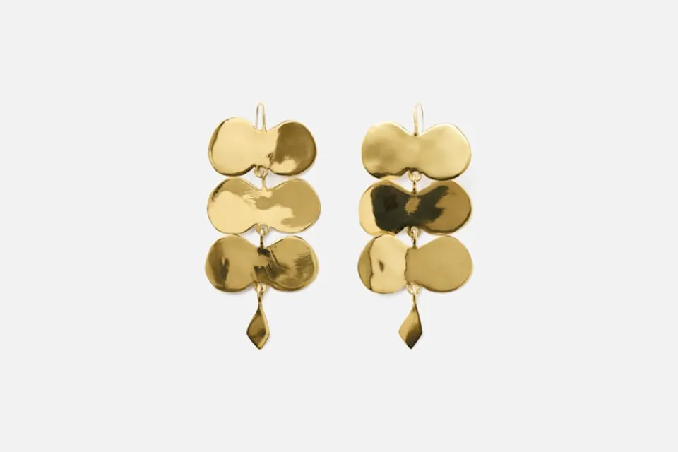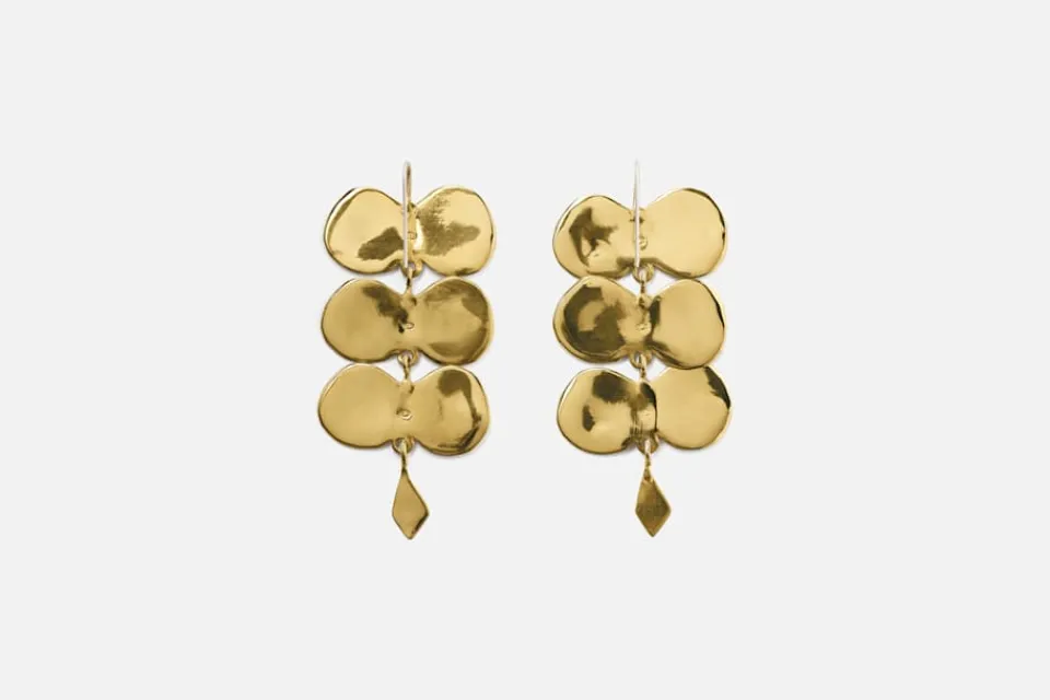 Dessa skulpturala mässingsörhängen är formgivna av Ariana Boussard-Reifel, vars smycken förenar samtida konst med antika former. Örhängena är handgjorda i mässing och speglar Arianas bakgrund som skulptör och hennes djupa fascination för mänsklig utsmyckning genom tiderna. Hennes smycken har burits av kvinnor i flera generationer och skapas för att stärka, inspirera och hålla över tid.