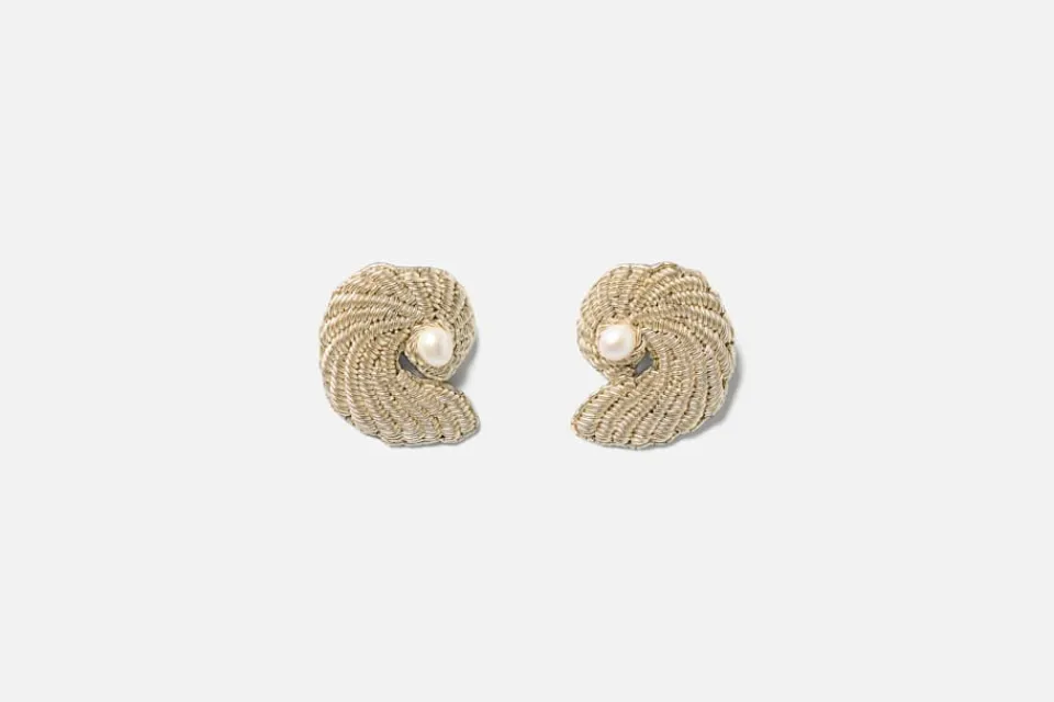 Dessa vackert broderade, snäckformade örhängen med pärlor är formgivna av smyckekonstnären Sophia Edstrand. Örhängena är lätta i vikt och bekväma att bära. Det unika uttrycket gör dem till enastående smycken som håller över tid. Varje smycke från Sophia 203 tillverkas för hand av skickliga hantverkare i Jaipur, där trådar av silke och zari broderas på en bas av mjuk sammet. Resultatet är ett detaljrikt och slående vackert hantverk.