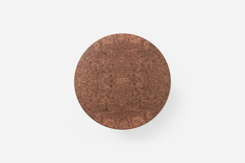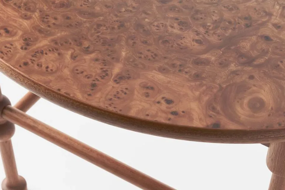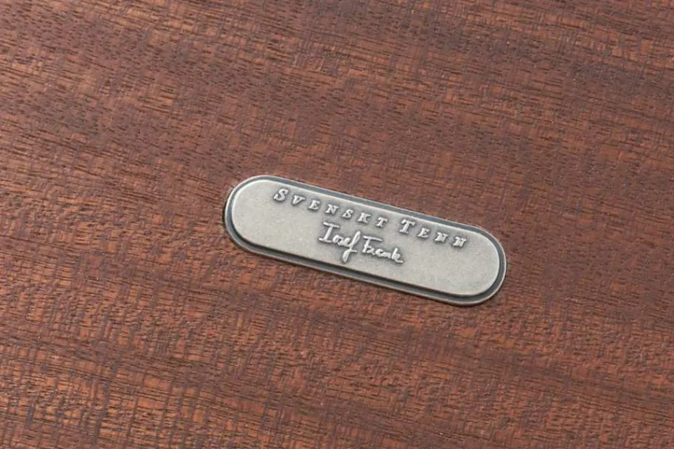 Almrotens karakteristiska drag är livfullt med både lugna och krusiga partier. Almroten skiftar i färg från ljust guldigt, skimrande grönt till mörkt brunt. Varje bord får därför sitt unika uttryck och individuella karaktär. Samtliga Svenskt Tenns nyproducerade möbler är försedda med en plakett som visar att möbeln är äkta.