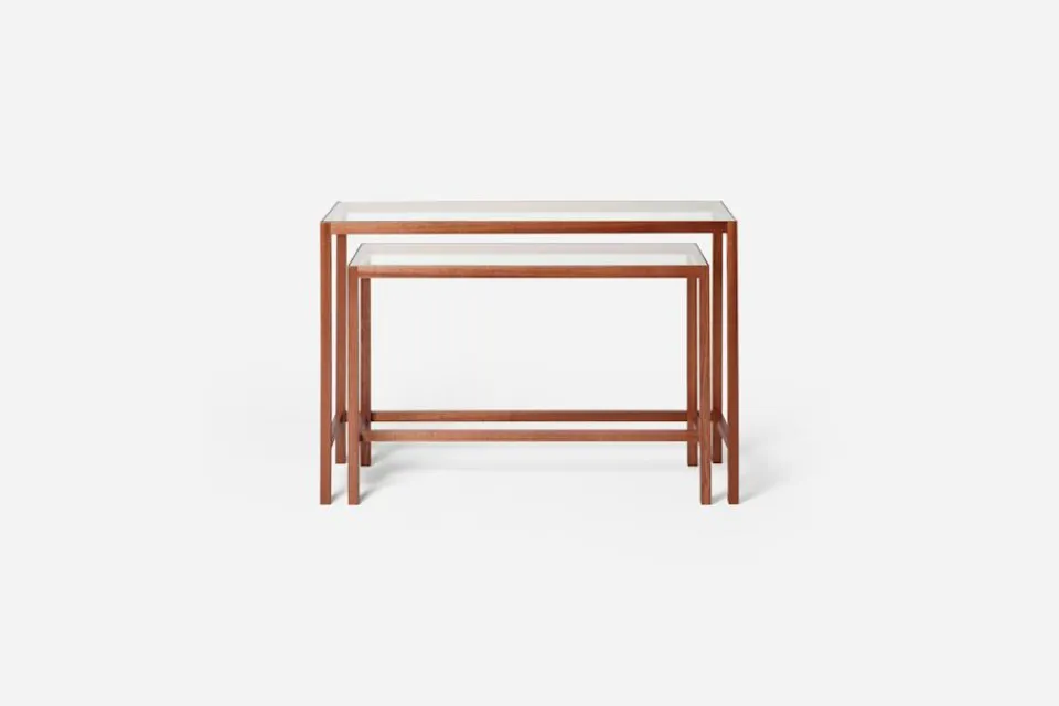 Sidobordet 548 består av två nätta bord som kan placeras under varandra likt ett satsbord. Det formgavs av Josef Frank för Svenskt Tenn 1934, och har tillverkats i olika utföranden. Denna variant i mahogny med bordsskivor i glas har tagits fram för att komma så nära originalritningen som möjligt.