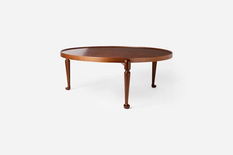 Josef Frank hade en förkärlek för den runda formen. Den återkom ständigt, i såväl fönstren i hans arkitektoniska verk som i hans många speglar och bord. Soffbord 2139 kombinerar den runda formen med Josef Franks karakteristiska sargkant. Bordets stiliserade tassar härstammar från Queen Anne-stilen som var rådande i England under första delen av 1700-talet. De tre benen smalnar av neråt och ger ett luftigt intryck som förstärks av ”midjan” upptill. Att blanda olika material var också karaktäristiskt för Josef Franks formgivning och genom att låta tillverka skivan i almrot och sargen samt benen i valnöt ville han skapa ett livfullt uttryck. Bordet är formgivet år 1952 för Svenskt Tenn.