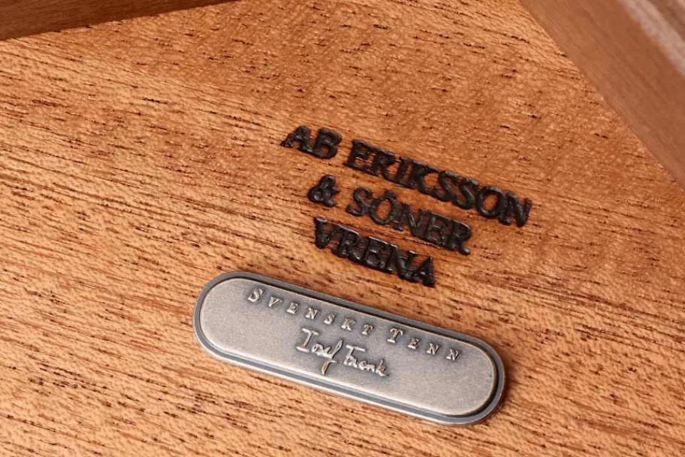 Samtliga Svenskt Tenns nyproducerade möbler är försedda med en plakett som visar att möbeln är äkta.