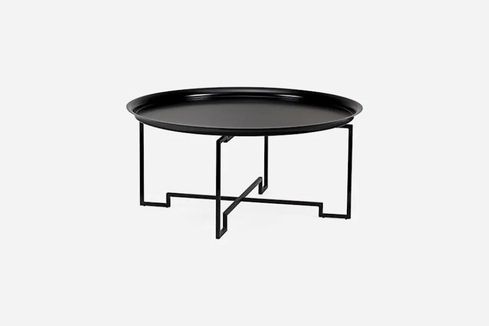 Formen på detta soffbord i järn ger ett intryck av lätthet samtidigt som materialet inger både tyngd och kvalitetskänsla. Bordet formgavs år 2000 av arkitekt Per Öberg. Bordsskivan vilar på en benställning med inspiration från antikens meanderform och blandningen av modernt och klassiskt stämmer väl överens med Svenskt Tenns formfilosofi.