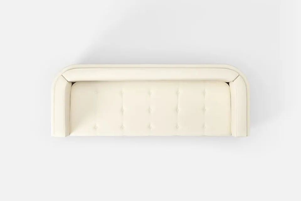 Soffa 136 formgavs av Björn Trägårdh för Svenskt Tenns tidiga möbelsortiment, och finns bland annat avbildad i företagets allra första möbelkatalog från 1931. Soffans rundade hörn och de lösa ryggplymåerna i samma form utmärker designen, som var ytterst ovanlig för soffor under tidigt 30-tal.