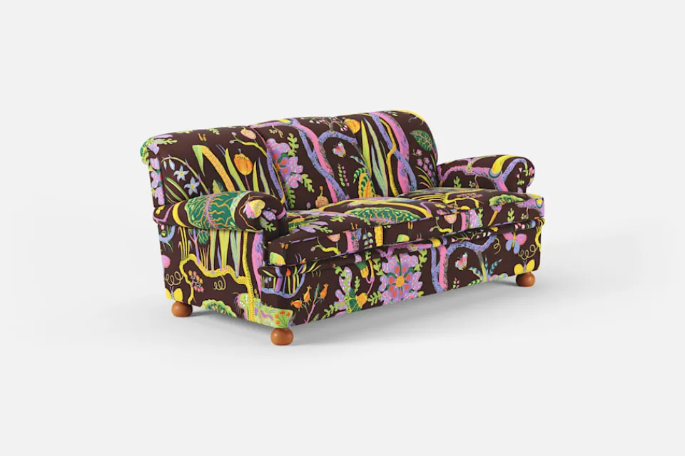 Josef Frank formgav den här långa, rymliga soffan under 1930-talets andra hälft. Ryggpartiet delas av rep vilket utgör en spännande dekor. Enligt Josef Frank skulle också det moderna hemmet vara en plats för vila och bekvämlighet, sittplymåer och dubbla fjädersystem ger en utmärkt komfort.