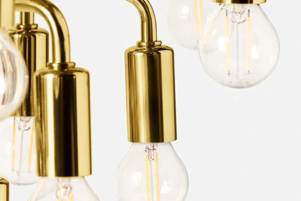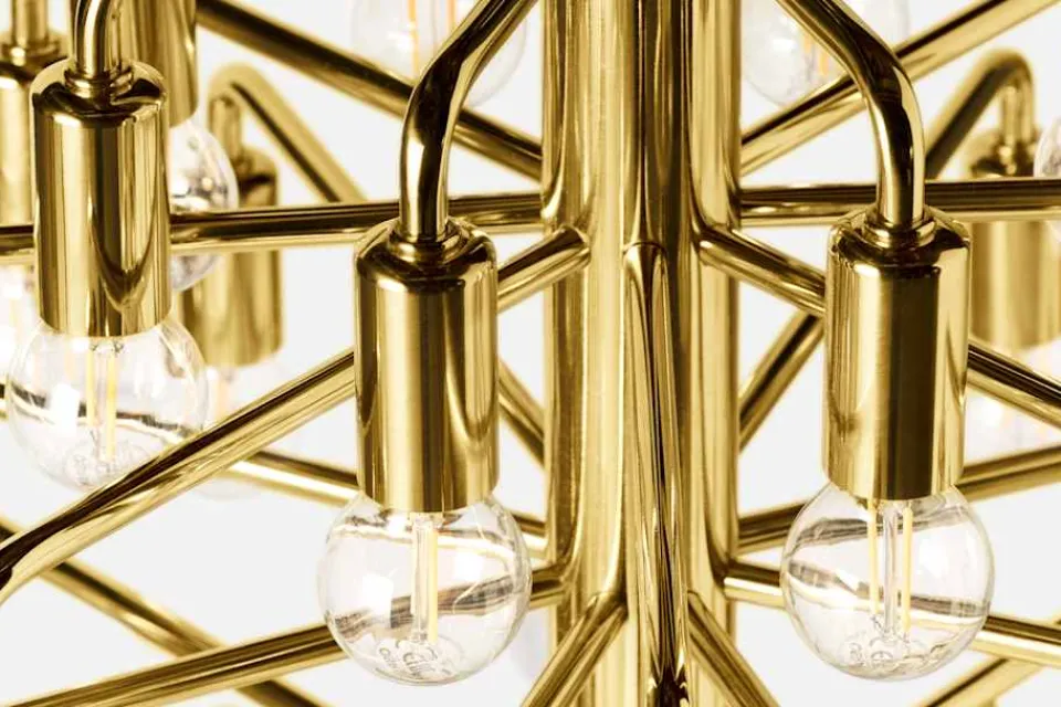 En enastående takkrona av Josef Frank, idealisk att hänga över matbordet. Takkronans 57 armar och ljuskällor är fördelade på åtta plan som tillsammans bildar en cirkelliknande form. Det generösa antalet smålampor ger ett vackert och iögonfallande intryck. Takkronan formgavs under 1950-60-talet, men produceras för första gången till Svenskt Tenns hundraårsjubileum 2024.