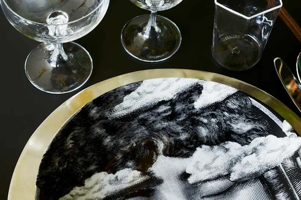 Att forma fat, tallrikar och skålar i tenn och porslin går långt tillbaka i tiden. Redan på 900- började tenn användas för att skapa funktionella vardagsföremål och på 1600-talet blev det allt vanligare att använda graverat tenn i finare dukningar. Detta tennfat tillverkas av det lilla, familjeägda företaget Cosi Tabellini som grundades 1954 i den italienska staden Brescia.