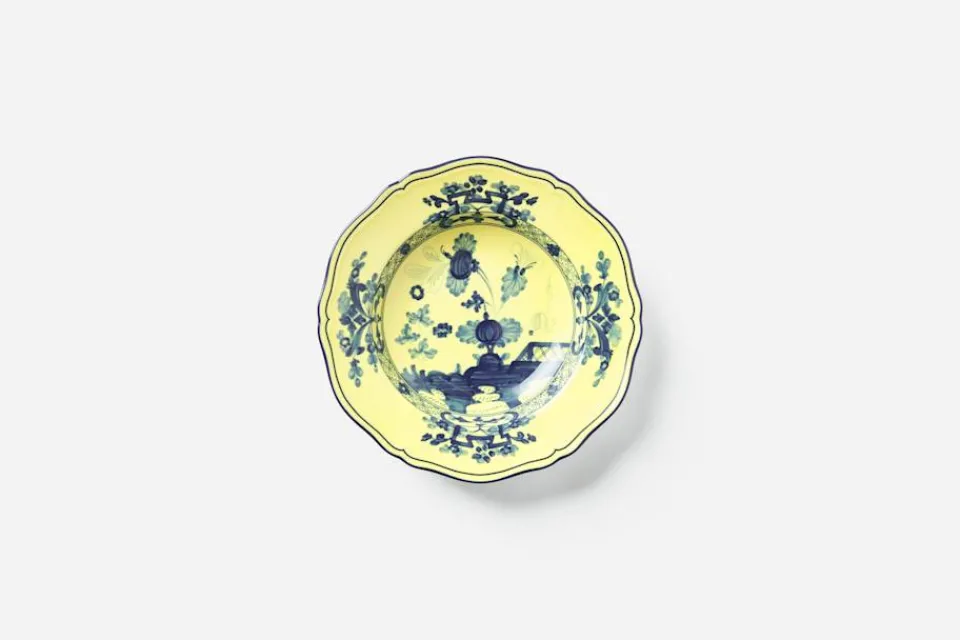Duka ditt bord med sopptallrik Oriente Italiano och förvandla en enkel middag till en extraordinär upplevelse. Porslinsserien från anrika, italienska Ginori 1735 är tidlös och klassisk i sin design, med vackert motiv som för tankarna till en frodig trädgård.