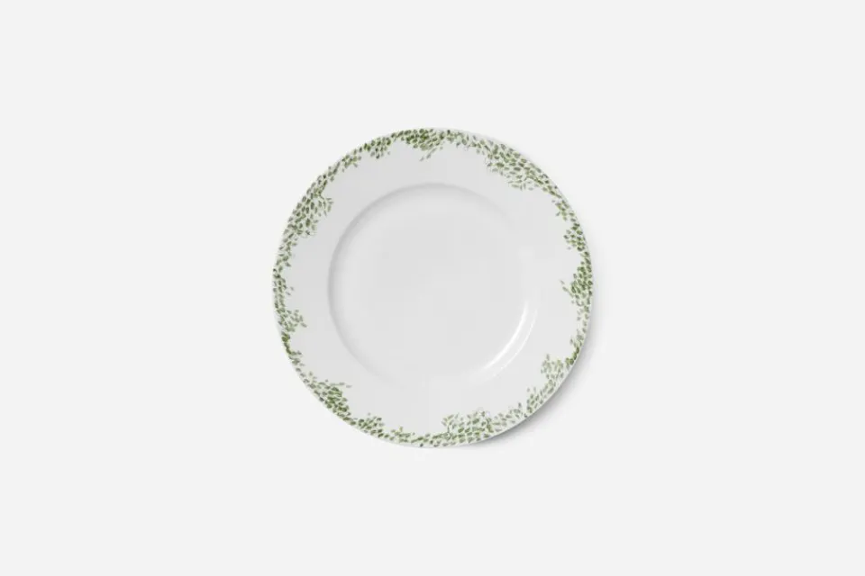 Tallrik Myrten är formgiven av Signe Persson-Melin som en komplettering till teservisen i tenn som hon formgav för Svenskt Tenn 2004. Det fina, sirliga myrtenmönstret smyckar flera produkter till det dukade bordet. Det är en gammal tradition att binda brudkronor av myrtens gröna blad, och växten är starkt förknippad med kärlek.