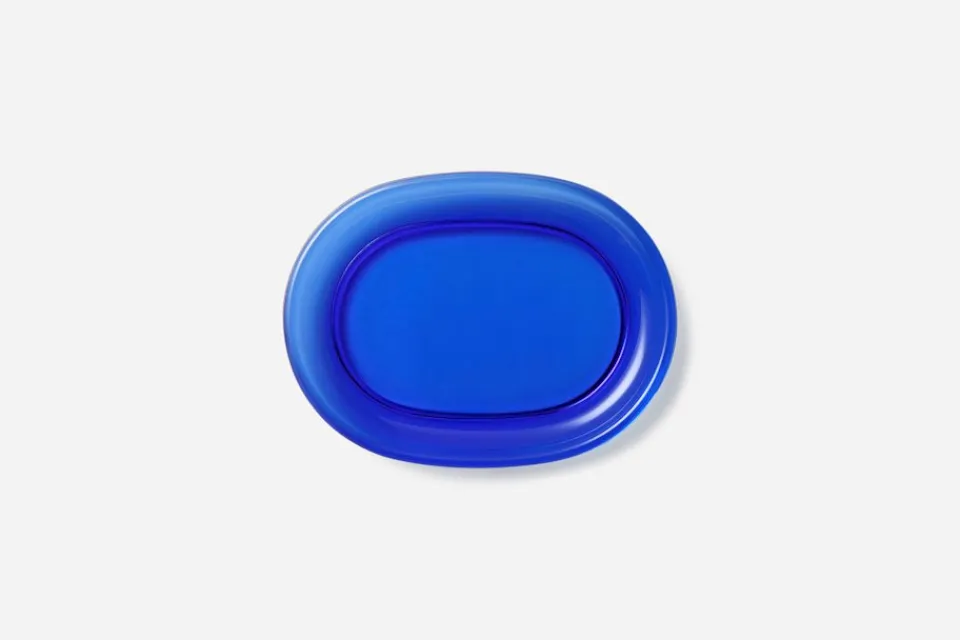 Svenskt Tenn började tillverka den ovala glastallriken på 1940-talet. Ursprungligen var den tänkt som skaldjurstallrik men kan med fördel även användas för frukt och kakor.