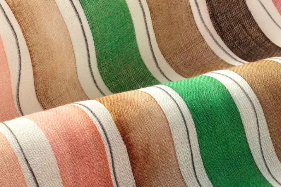 Textil Anacapri smyckas av målade ränder i varma sommartoner, inspirerade av den blomstrande trädgården som omger Villa San Michele på Capri. Mönstret är en del av kollektionen ”Capri”, skapad av designern Lars Nilsson för Svenskt Tenn, under våren 2018.