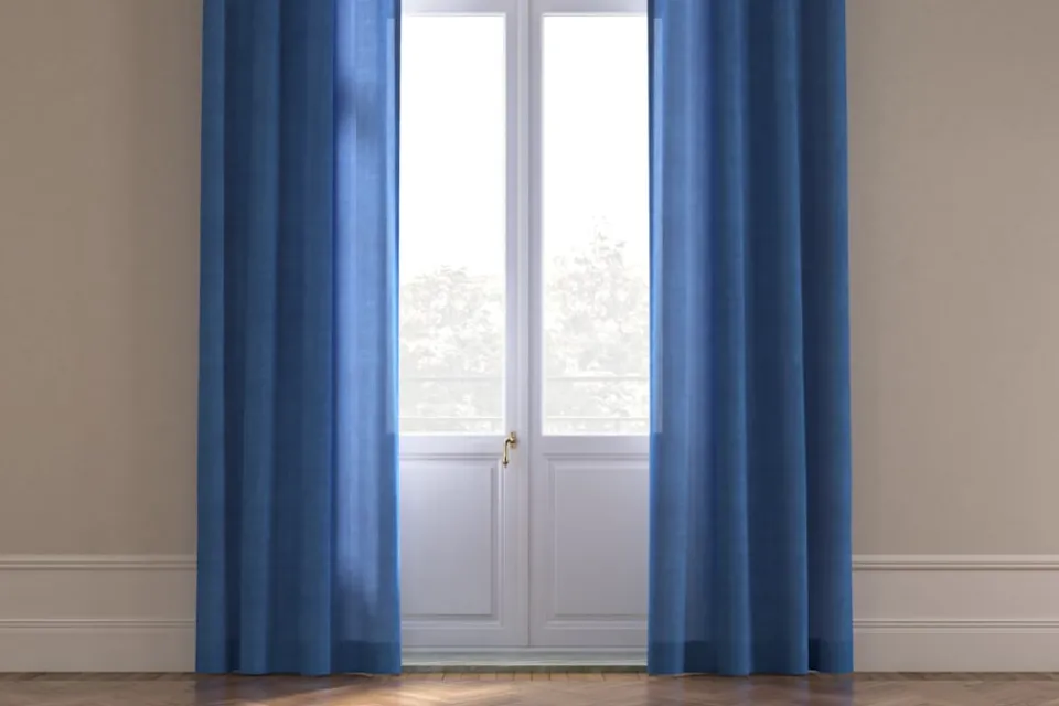 Svenskt Tenns klassiska linnetyg i påfågelblå passar väl ihop med både enfärgade tyger och mönstrade textilier. Tyget finns i flera olika färgställningar.