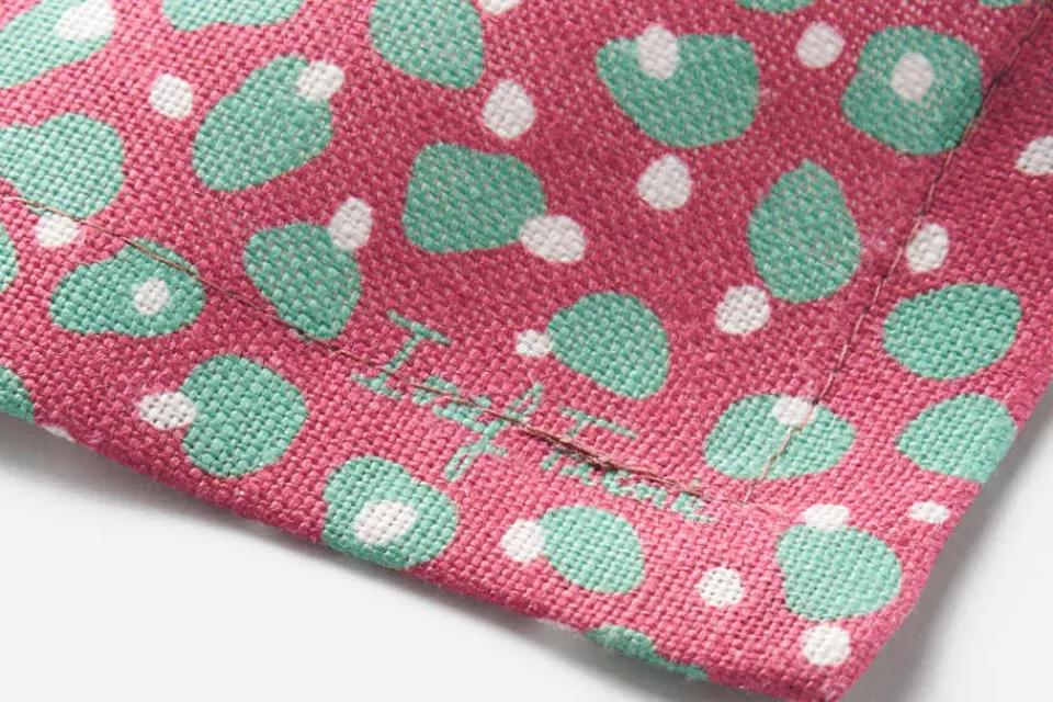 Svenskt Tenns textilprodukter maskintvättas i 40 grader. Undvik blötläggning samt tvätt i högre och kallare temperaturer då färgen riskerar att fälla ut. Använd ett milt tvättmedel utan blekmedel. Låt textilen dropptorka. Centrifugera aldrig. Vid tvätt kan textilierna krympa med cirka 3 – 5 %.