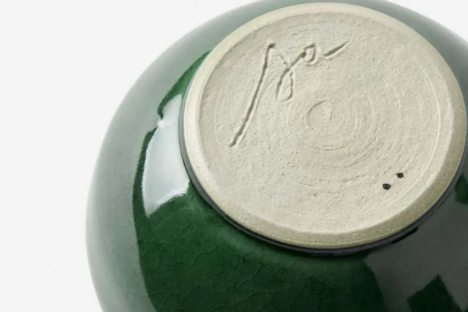 Liten, handgjord keramikvas av Annali Andersson, inspirerad av klassiska, östasiatiska förvaringskrus och vaser. Den oribegröna färgen är en östasiatisk glasyr i naturgrönt som använts för att återspegla berg och floder.