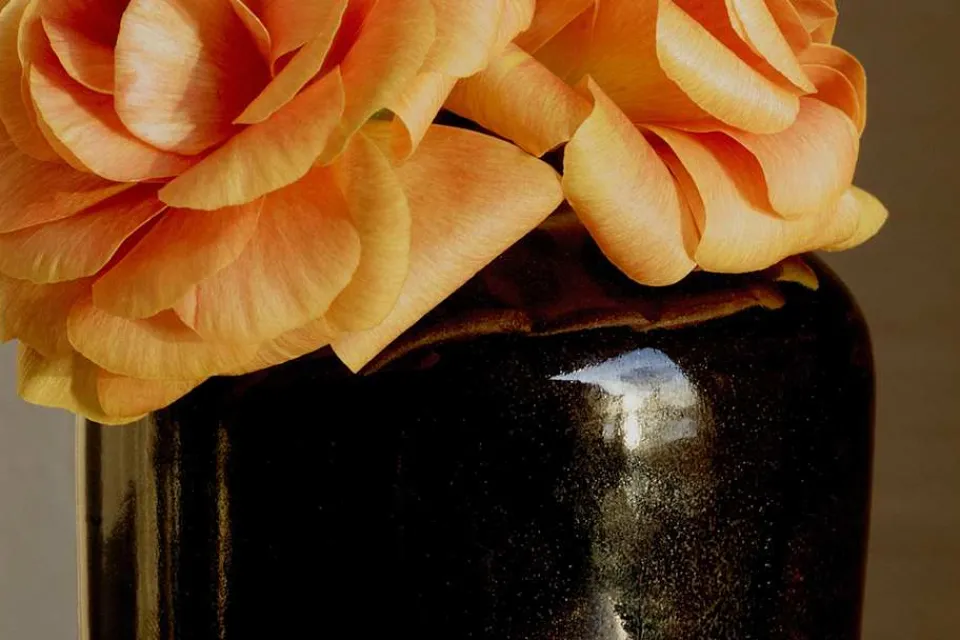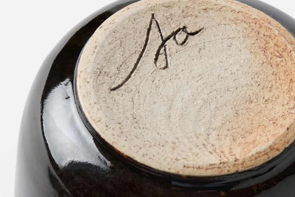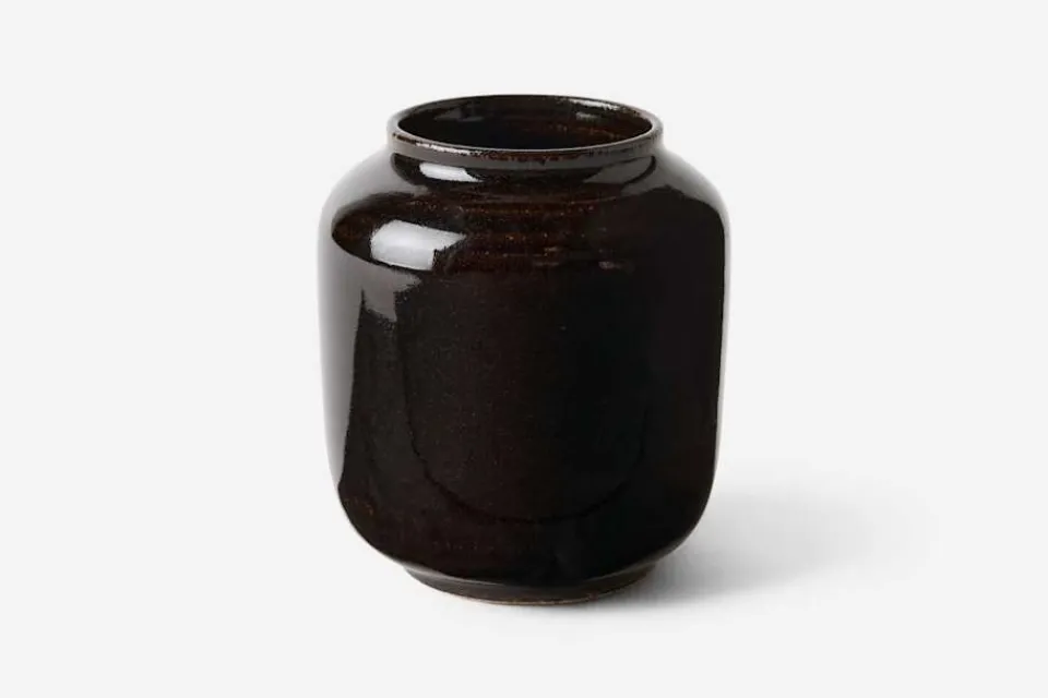 Liten, handgjord keramikvas av Annali Andersson, inspirerad av klassiska, östasiatiska förvaringskrus och vaser. Den Temmokusvarta färgen är en östasiatisk glasyr som ursprungligen användes på teskålar från Kina under Songdynastin.