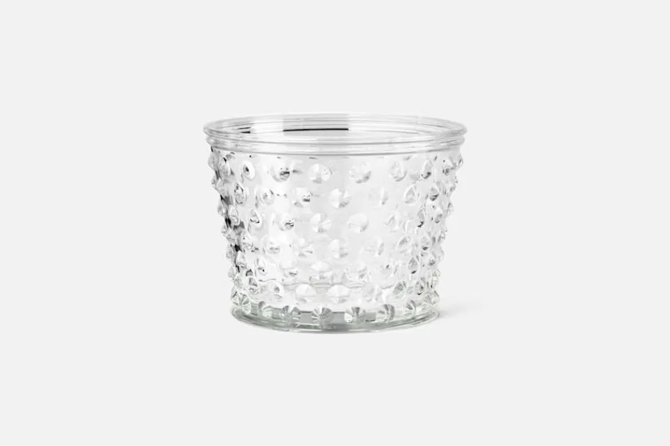 Krukan har en tunn skarv i glaset som uppkommer då den är pressad i en delbar gjutform. Den poleras i efterbearbetningen, men spår av den hantverksmässiga produktionen finns alltid kvar på slutprodukten.