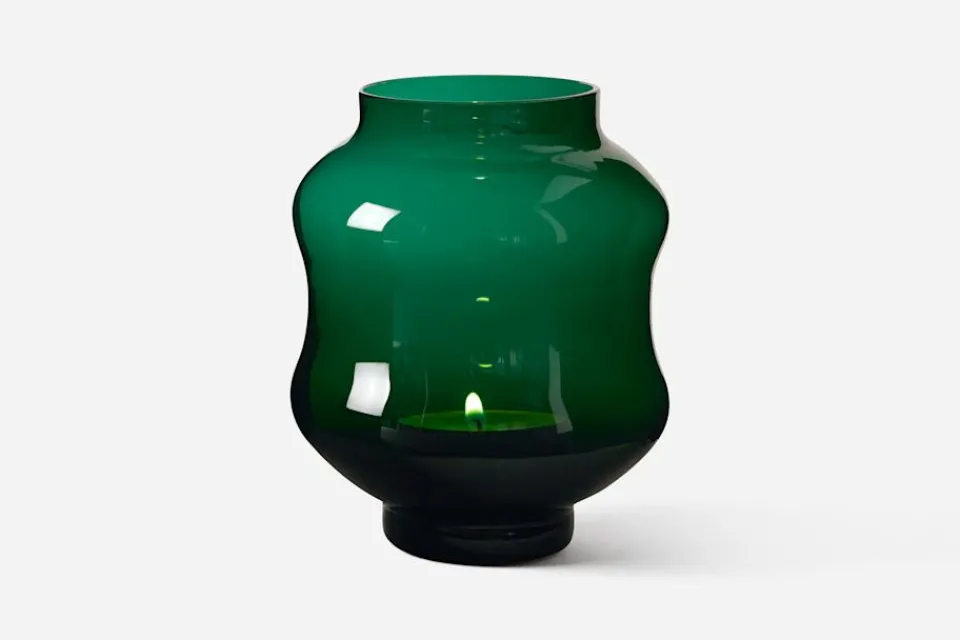 Formgivaren Johan Bjurmar inspirerades av minnen från havet när han skapade denna ljuslykta/vas för Svenskt Tenn. Sommarkvällar i Stockholms skärgård, hundratals papperslampor svävande över havet i Sydostasien och åren på västkusten då han badade i mareld var några av de tankar som vävdes samman i formen. Mareld tillverkas på Skrufs glasbruk i Småland och finns i fem olika färger: klarglas, grön, blå, tenngrå och bärnsten. Den kan användas både som ljuslykta och som dekorativ vas.