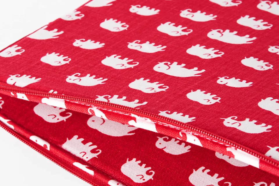 Handsytt, praktiskt och dekorativt datorfodral i Svenskt Tenns klassiska textil Elefant, formgivet av företagets grundare Estrid Ericson. Hon letade alltid efter vackra föremål, textilier och souvenirer att ta hem och sälja i butiken på Strandvägen. Det var efter en förlaga från Belgiska Kongo som hon formgav mönstret med de små elefanterna. Svenskt Tenn tryckte textil Elefant för första gången i slutet av 1930-talet. Elefantmönster