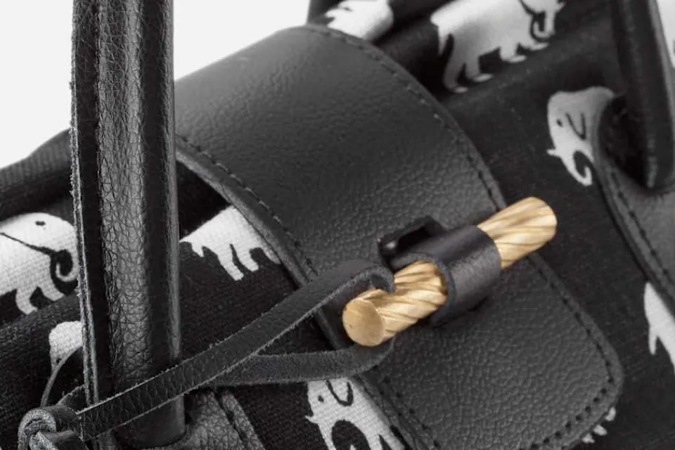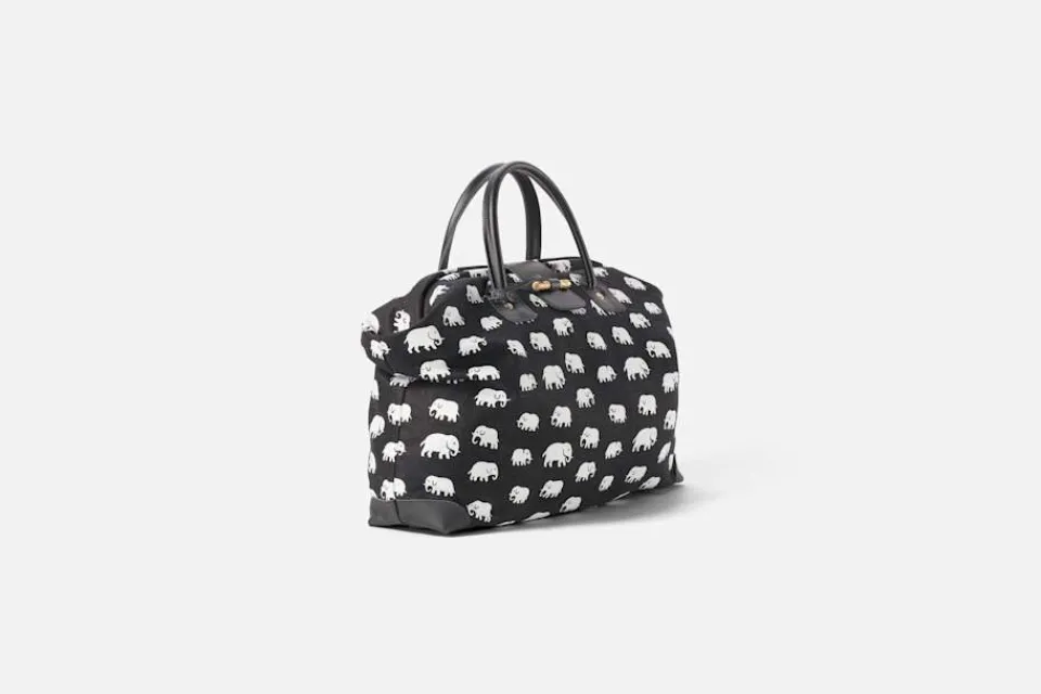 Svenskt Tenns klassiska handväska är dekorerad med en dragkedja och knäppning i mässing samt läderdetaljer. Invändigt finns en avtagbar nyckelring samt en ficka. Estrid Ericson har gjort mönsterdesignen och Svenskt Tenn har tagit fram formen. Svenskt Tenns grundare Estrid Ericson reste mycket till olika platser runt om i världen. Hon letade alltid efter vackra föremål, textilier och souvenirer att ta hem och sälja i butiken på Strandvägen. Det var efter en förlaga från Belgiska Kongo som hon formgav mönstret med de små elefanterna. Svenskt Tenn tryckte textil Elefant för första gången i slutet av 1930-talet.