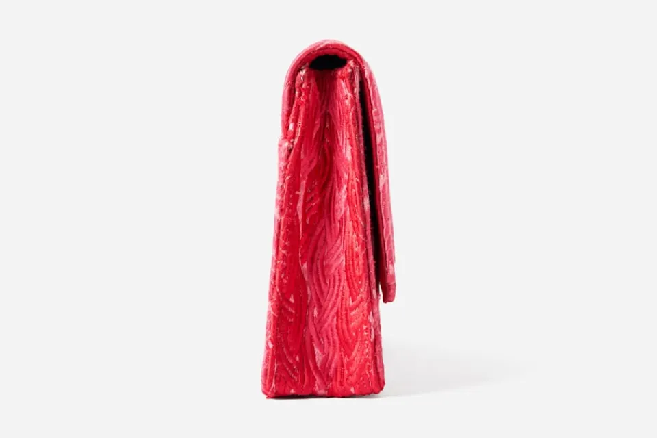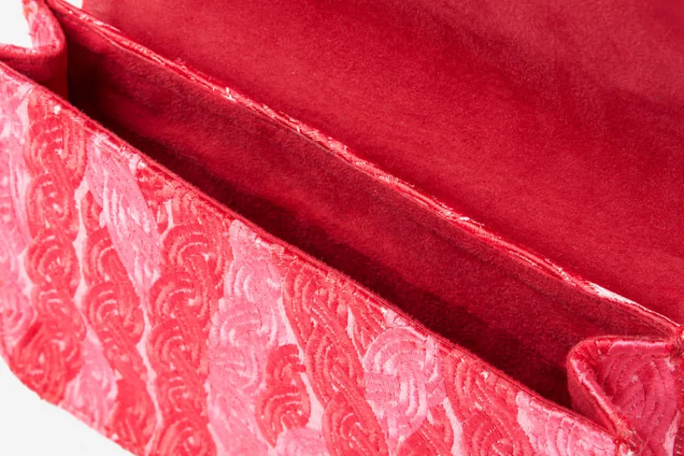 Kuvertväska skapad av formgivaren Sophia Edstrand. När hon för första gången reste till Jaipur i Indien, snubblade hon över den sällsynta broderiteknik som idag utmärker hennes feminina och fantasifulla skapande.