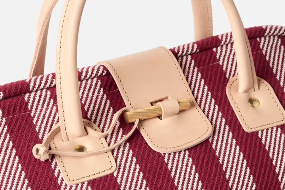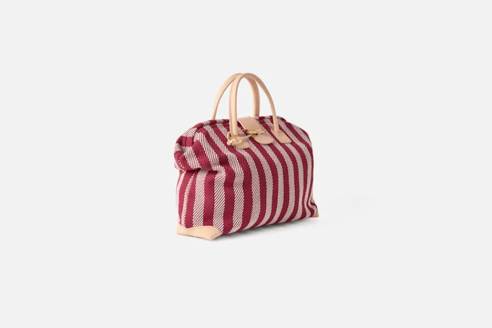 Denna handväska förenar funktionalitet med den grafiska elegansen i Dedar Milanos Voulez-Vous-twill. Det slitstarka, vattenavvisande, randiga tyget ger ett lättsamt uttryck, förfinat med mässings- och läderdetaljer. Invändigt finns en avtagbar nyckelring och en ficka som tillför praktisk funktion.